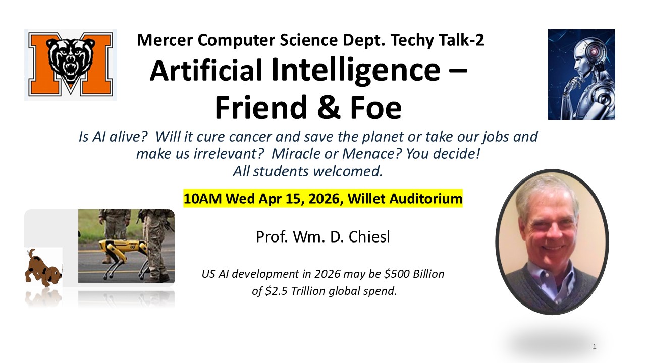 During his forty-year career, Adj. Prof. Wm. D. Chiesl has been responsible for the delivery of enterprise IT solutions to a wide range of Fortune 1000 companies. More recently, for the past five years, he’s taught mathematics and undergraduate computer science courses at Mercer University in Macon where he is also a First-Gen Mentor. He is passionate about helping students succeed in the classroom and also helping to prepare them for success in the workplace. He holds an MS in Computer Science from the University of Wisconsin at Madison and a BS in Mathematics and Chemistry from Northern Illinois University in DeKalb, Illinois.