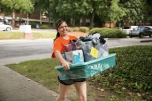 New first-year students and families celebrate the start of their Mercer experience. Residential students move into residence halls during specific time frames and commuter students attend a special program.