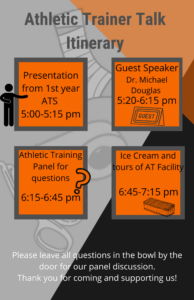Interested in athletic training? Learn more about the profession and ask questions to a panel of certified athletic trainers and current students.