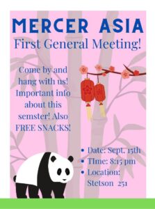 Come join us for our first general meeting as we go over plans for this year as well as getting to know each other through some fun games! Free snacks will be provided
