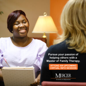 Pursue your passion of helping others by earning a Master of Family Therapy (MFT) through Mercer University's School of Medicine. As one of a select few MFT programs in the country affiliated with a medical school, you'll have a unique opportunity to learn about mental health in a collaborative interdisciplinary context. Through our personalized approach…