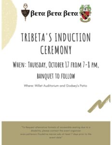 Induction Ceremony for associate and regular members of the Tri-Beta Biology Honors Society.