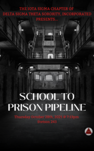 The School to Prison Pipeline is a disturbing national trend where children are funneled out of public school and into the juvenile and criminal Justice system. Join us Thursday, October 28 at 7:13pm in Stetson 243 for a riveting conversation. The first 25 people to enter will receive a canvas to paint as they take…