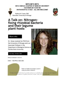 A talk on "Nitrogen-fixing rhizobial bacteria and their legume plant hosts" - by Dr. Kathryn Jones Ph.D., Associate Professor, Florida State University.