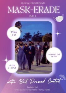 Join the Mercer Music & Lyrics Club for a magical night in the sparkling lights! Behold, Prom 2.0, A MASK-erade Ball! Mark your calendars for January 28th, 2022 from 6-9pm in Penfield Hall and prepare to dance the night away under the stars! This event is FORMAL so pull up in your best prom attire!…