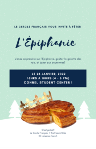 The French Club is celebrating L’Épiphanie, a traditional French holiday! We will be having games and the "Galette des Rois," the Cake of Kings, which is an especially prepared dessert for this occasion!