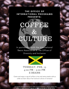 Come enjoy a cup of coffee or tea and some snacks with us on Tuesday at Z Beans as we learn about the food and culture of Jamaica from one of our students!
