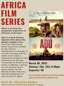Come join us in Stetson 251 as we watch the movie Adú, a riveting tale on the woes of the refugee crisis.