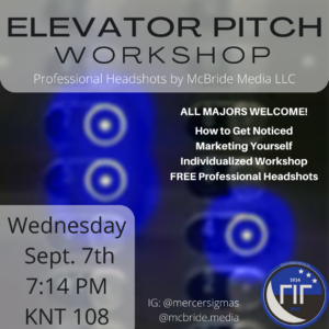 Kickstart your career today! A captivating elevator pitch is essential for effective networking. Learn how to better market yourself using your strengths and get personalized help on your own elevator pitch. Free professional headshots will be offered by McBride Media with advance signup here. or through the Linktree in our Instagram bio @mercersigmas.