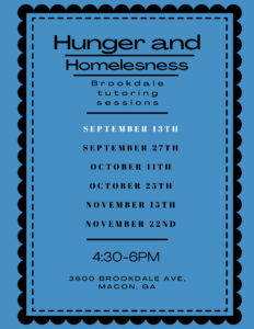 Welcome to MerServe, Mercer's student-led service programming board! You can help tutor students at the Brookdale Resource Center. Brookdale is a homeless shelter that serves the Macon area. It provides meals, bedding, as well as wellness programs for its residents, and we are hoping to add tutoring to this growing list.