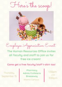 Employee appreciation event with free ice cream and T-shirts for faculty and staff.