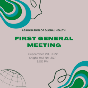 Join us for Association of Global Health's first general meeting of the semester. We aim to connect with other aspiring global health professionals on our campus. We will discuss important opening topics for AGH and open the floor for any ideas from our members. We will also have refreshments available. We hope to see you…