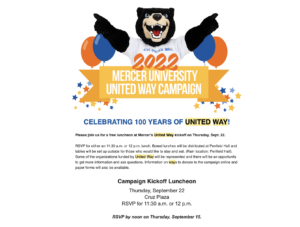 Join us for lunch as we kick off our 2022 Mercer University United Way campaign.