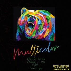 Let's paint together. Join us on Monday, October 3, 2022, from 5:00-6:30 p.m. for a Paint by Number Party with the Office of Diversity and Inclusion and the Student Government Association. The event will be held in CSC 1. Snacks will be provided. An official J.E.D.I.-Belonging Event.