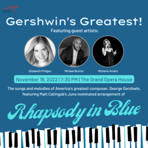 This show will spotlight the songs and melodies of America’s greatest composer, George Gershwin. Our special guests will be pianist Elizabeth Pridgen, saxophonist Mike Burton and vocalist Michelle Amato. The performance will include our very own Matt Catingub’s Juno nominated arrangement of the famous “Rhapsody in Blue.” BUY NOW